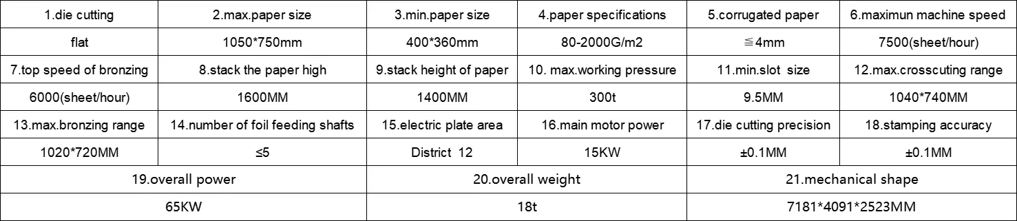 | Дюймовый-1050ZHS тяжело (глубокое тиснение) 3 вертикальная и 2 горизонтальная машина для резки и штамповки | Его можно использовать для бумаги и пленки-резка, штамповка, тиснение, вогнутое выпукление и т. Д. |